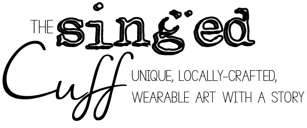 The Singed Cuff pieces are designed as unique, accessible, wearable art. The Singed Cuff pieces are meant to be touched and tried on. You won't find anything behind a glass case. You won't have to ask a salesperson to try something on. All you have to do is make plans to attend a Singed Cuff Trunk Show. Contact me for information on upcoming shows.