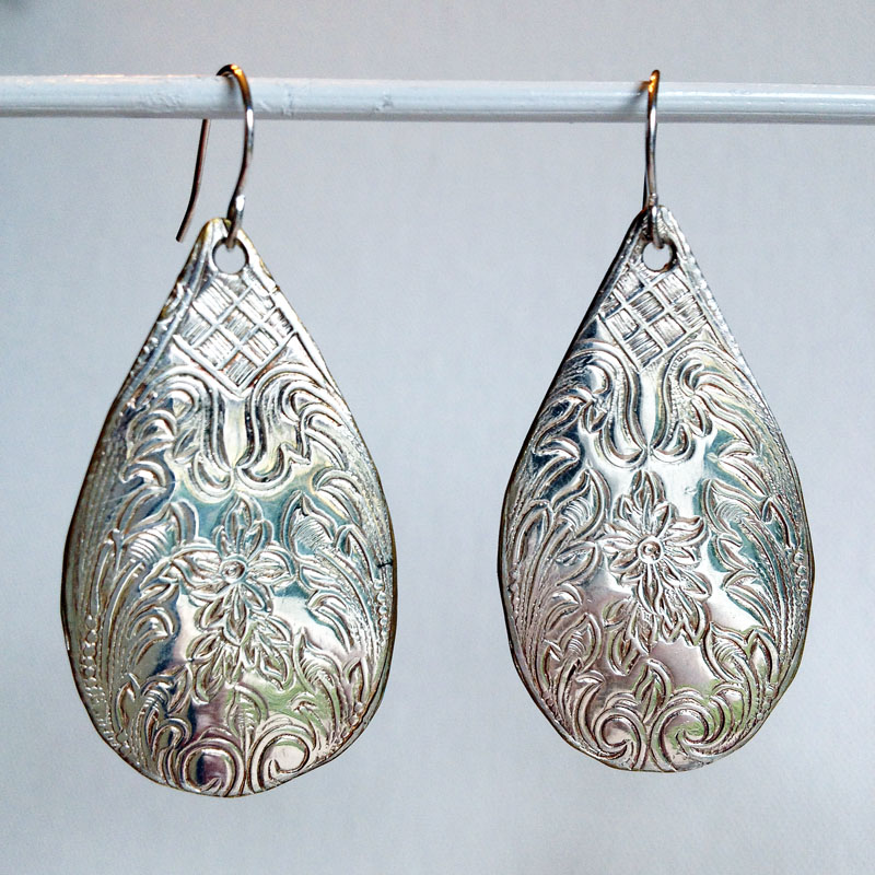 My work is a collection of things that make me happy, and hopefully, you too. Whether I'm fashioning some vintage jewels into a pair of earrings, or transforming a tarnished silver platter into a one-of-a-kind necklace, my work is designed to simply make you smile. I strive to create jewelry that is unique, accessible, and tells a story. All of my work is hand-crafted, and inspired by my (pretty-darn-great) everyday life.